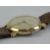 An Oris manual wristwatch on leather strap, cream dial with yellow metal hands.