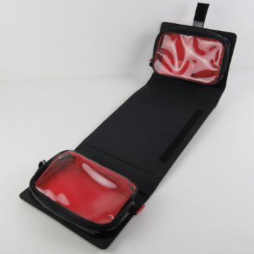 A Tokyo 7 patent wash bag having labels upon, together with costume jewellery, scarf, photo frame, mirror and pill pot. Seven items.