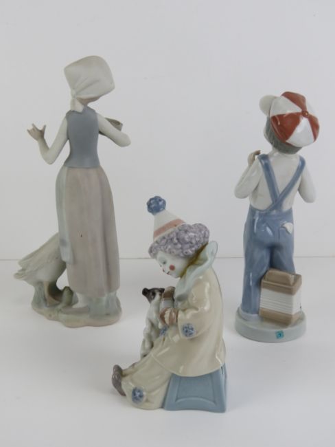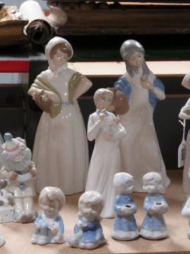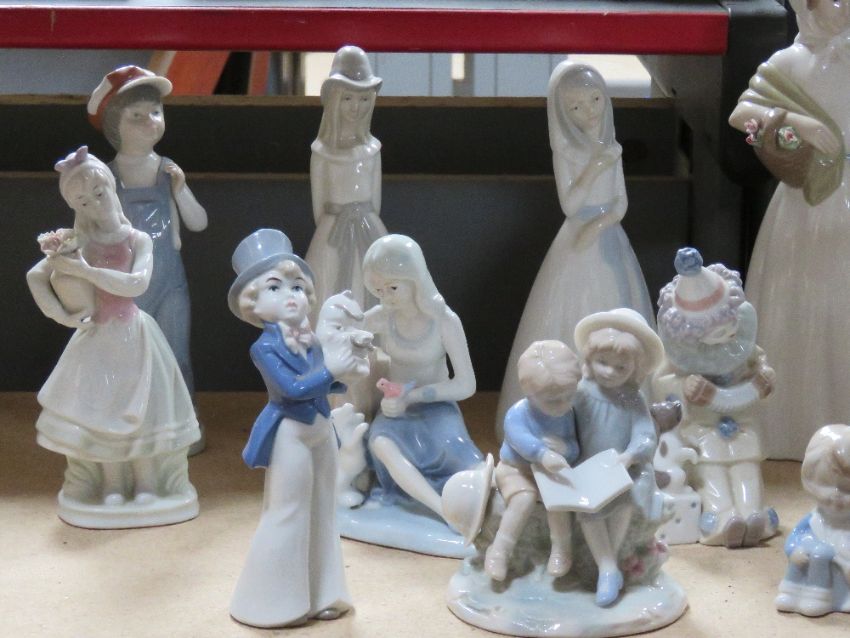 Three assorted Lladro figurines, 15-25cm high, fingers a/f. Together with sixteen assorted LLadro type figurines, 8-18cm high.