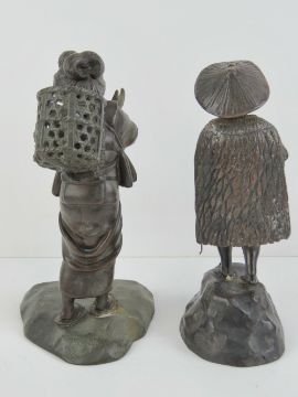 Two cast brass Oriental figurines being man and woman, each standing approx 21cm high.