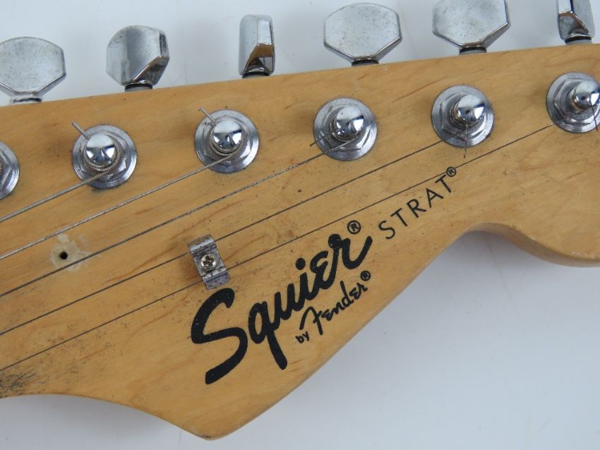 Electric guitar; Fender Squire Strat, red paint, a/f.