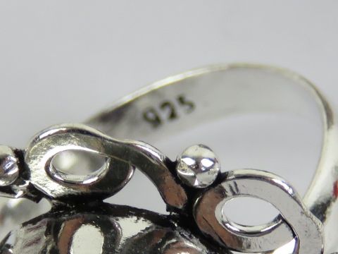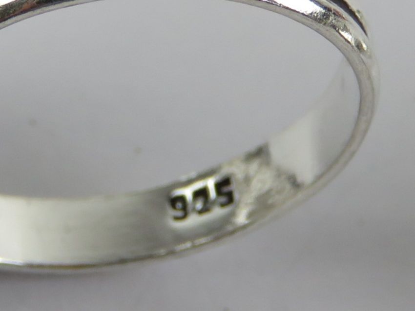 Six hardstone rings each stamped 925, size Q-R, including rose quartz and lapis lazuli.