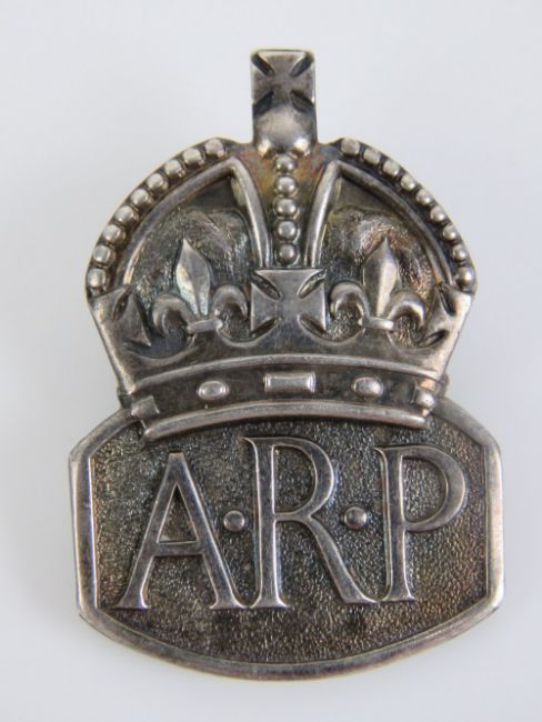 A HM silver ARP lapel badge, hallmarked London 1938.