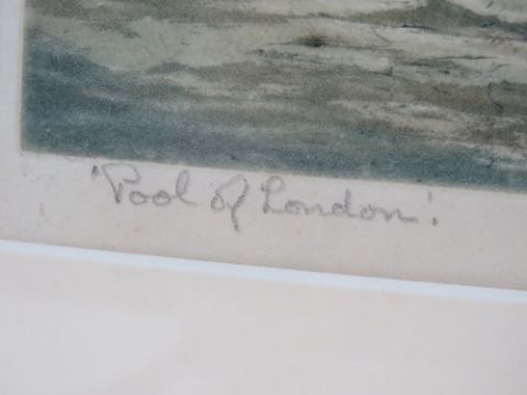 Coloured print; Pool of London by Francis Wells a Rembrandt Guild Artists Proof, 16 x 36cm.