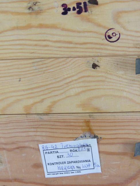 Twenty inert RG42 grenades with pins, in transit case.