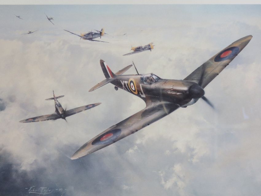 Print; Battle of Britain 603 Squadron Spitfires, 12th October 1940, signed and numbered 675/990.