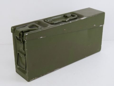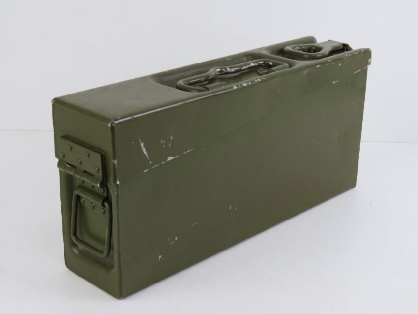 A rare WWII aluminium MG34/42 ammo tin, dated 1939.