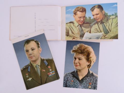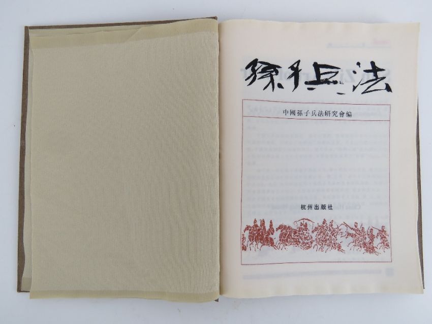 Sun Zi's Art of War by the Hangzho publishing house with collection certificate 5085, printed on silken fabric pages, contemporary. Together with a c1960s Russian full colour postcard pamphlet depicting various military officials. Two items.
