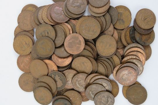A quantity of British copper coinage - penny and half penny, total weight 2.2kg.