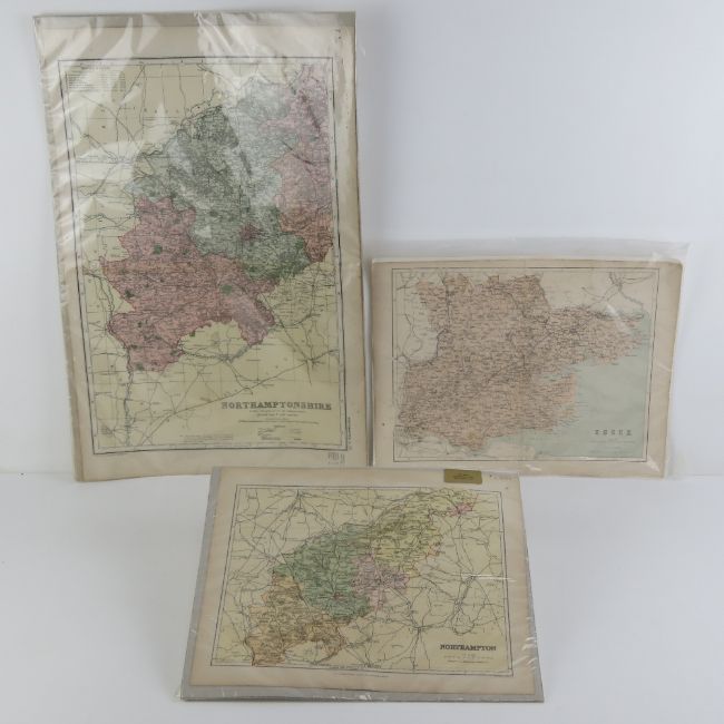 Maps; three printed maps, being Northampton, Northamptonshire, and Essex.