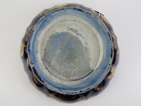 A 19th century cobalt blue and gilded pedestal bowl having floral decoration throughout, unglazed to base, 28cm dia.