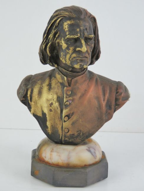 A late 19th Century bust of composer Franz Liszt signed E. Bormel Berlin (undated) over marble and slate base, standing 18.5cm high.