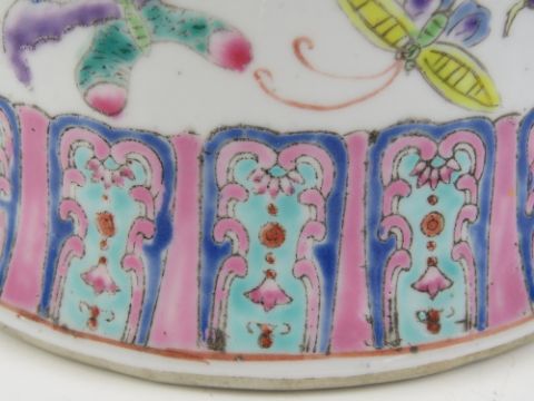 A Chinese vase having Guangxu style butterfly decoration in pinks and turquoise, six character mark to base, standing 30cm high.