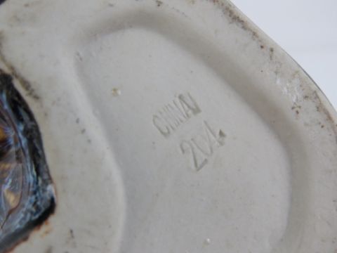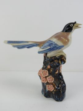 A vase in the form of a bird sitting on glazed 'tree stump' base, 19cm high.