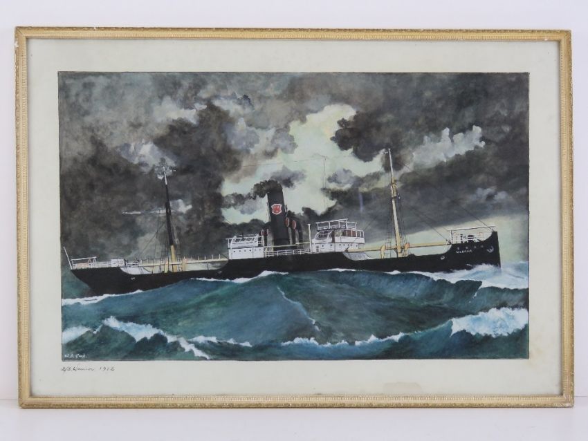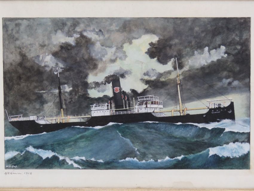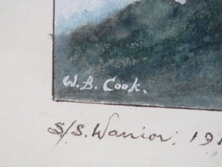 Watercolour; HMS Warrior, a 40-gun steam-powered armoured frigate built for the Royal Navy in 1859-1861, signed W.B. Cook and dated 1912, 48 x 30cm.
