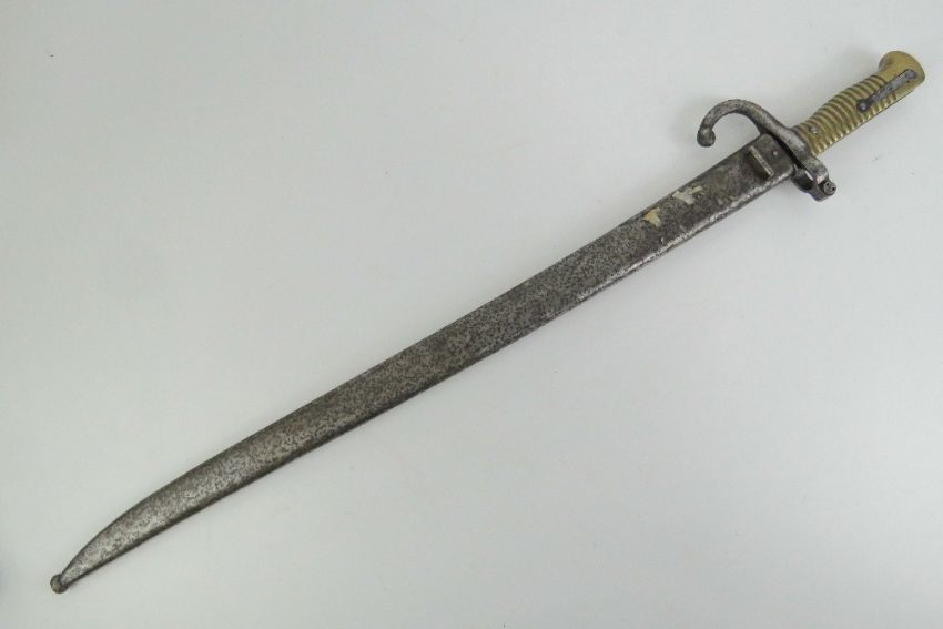 A Remington rolling block bayonet with brass grip, quillion, 57.5cm blade, with scabbard.