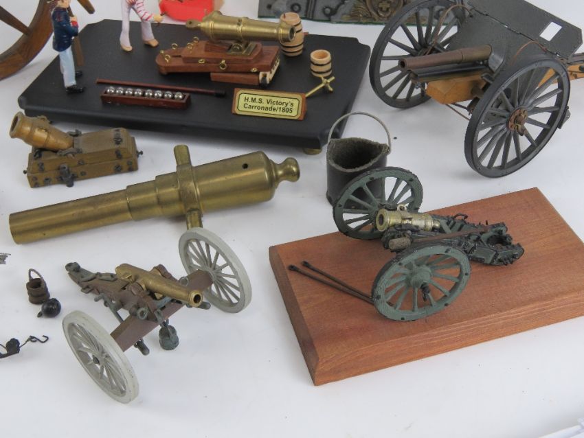 A quantity of assorted decorative cannons and accessories.