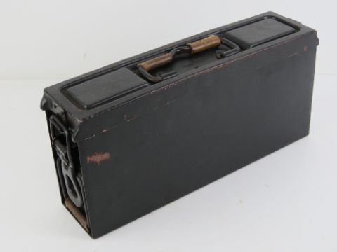 An early WWII German MG34 ammo tin having marks upon.