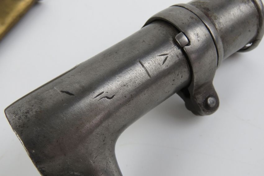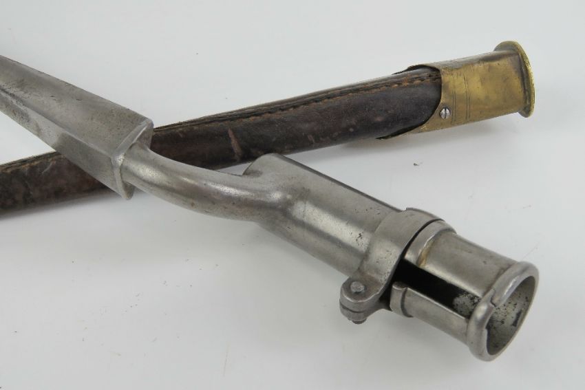 An 1853 pattern Martini Henry socket bayonet with leather and brass scabbard.