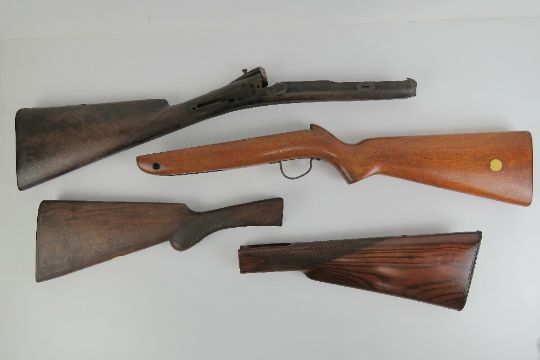 Four wooden rifle shoulder stocks.