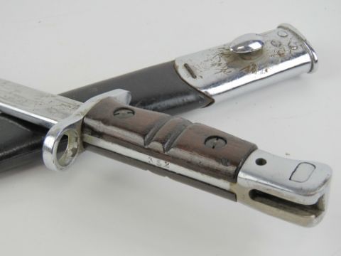 A 1907 pattern SMLE parade bayonet, blade marked for Wilkinson and measuring 43.5cm in length, with associated scabbard.