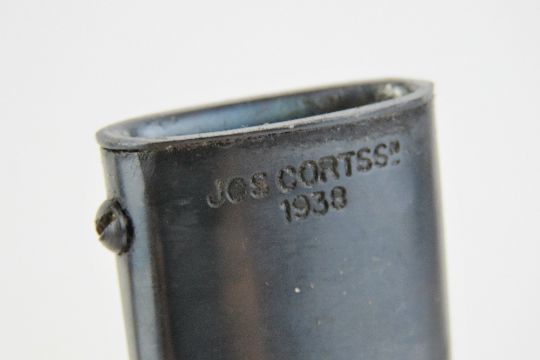 A WWII German K98 Bayonet by Alcosa Solingen and having 25.5cm blade, with associated scabbard marked Jos Cort SS n 1938.