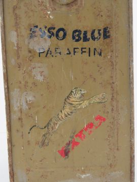 An Esso Blue paraffin tin can with pouring spout, 35cm high.
