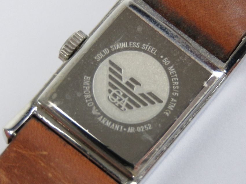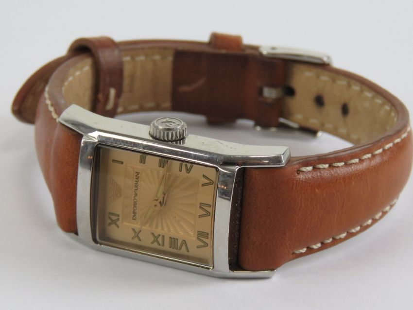 A ladies Emporio Armani wristwatch on original tan leather Emporio Armani strap.