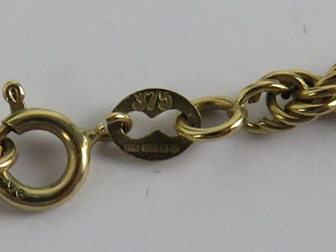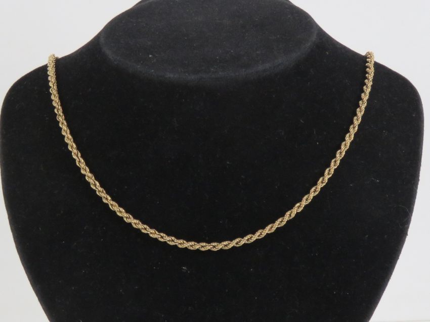 A 9ct gold rope twist chain necklace, hallmarked 375 and measuring 45.5cm in length, 4g.