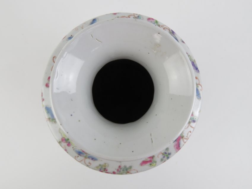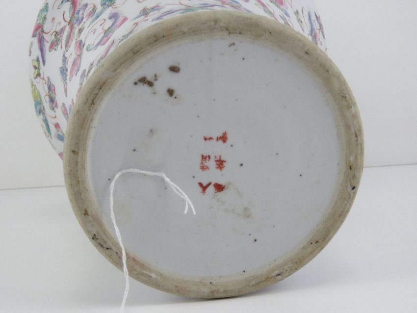 A Chinese vase having Guangxu style butterfly decoration in pinks and turquoise, six character mark to base, standing 30cm high.