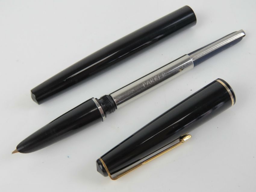 A vintage Parker 17 fountain pen having yellow metal nib.