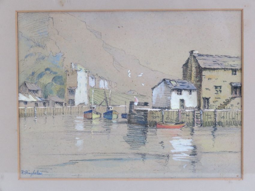 Pastel study, harbour scene, boats before, boats beyond etc, signed lower left R Stringfellow, 23 x 31cm.