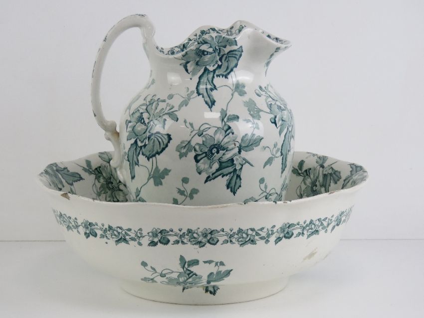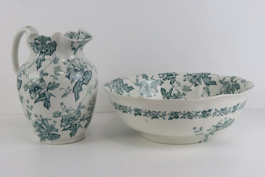 A wash jug and bowl in 'floral' design by Furnivals, bowl 39cm diameter.