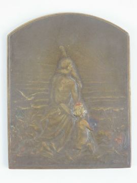 Georges Dupree (1869-1909), 'Salut Au Soleil' 1899; a bronze French plaque medallion 'Quand Tout Change Pour Toi La Nature Est La Meme Et Le Meme Soleil Se Leve Sur Tes Jours' signed G. Dupre and measuring 5 x6.2cm.