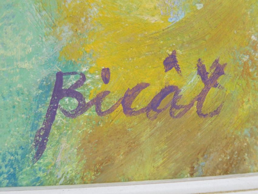Andre Bicat (1909-1996) impressionist oil on board; Andrea in Pascussiana, Florence, rural view, signed lower right, Bohun Gallery label verso, 22.5 x 19cm.