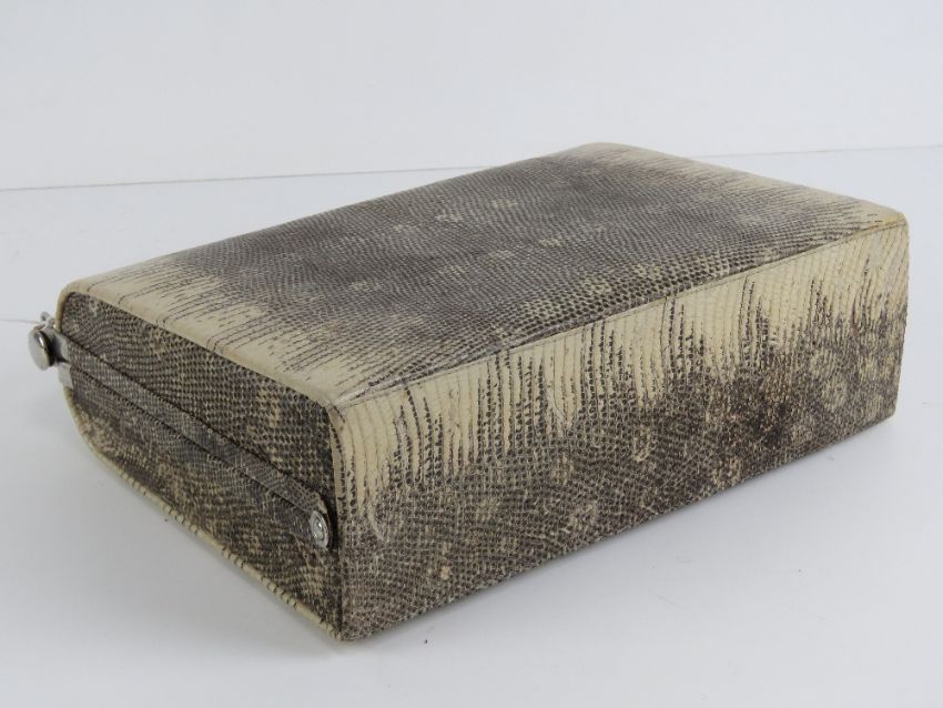 A vintage snake skin ladies handbag complete with python skin coin purse, 28cm wide.