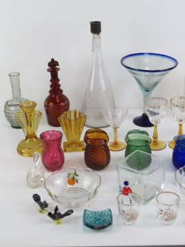 A quantity of assorted glassware including apothecary style bottle with stopper, Edwardian glasses, table top fairy light holders a/f, etc.