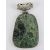 A large green hardstone pendant having hinged white metal pierced bale over, 6cm in length.