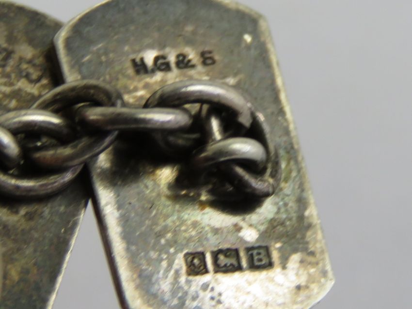 A pair of HM silver cufflinks having engine-turned pattern upon, halllmarked for Birmingham 1951.