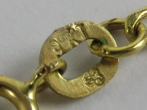 A 9ct gold alternating curb link chain, hallmarked 375 and measuring 46cm in length, 1.3g.