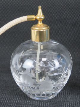 A quantity of vintage perfume bottles including; a mostly unused Yves Saint Laurent Rive Gauche, a Stewart Crystal atomiser, Art Deco style frosted glass atomiser and an Avon ballerina. Six items.
