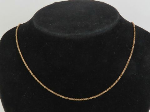 A 9ct gold rope twist chain necklace, hallmarked 375 and measuring 46cm in length. 4.7g.