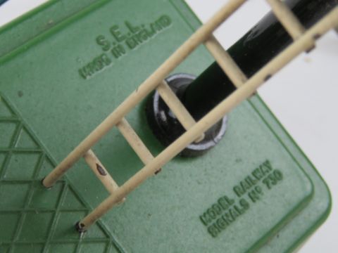Two 0 gauge free-standing railway signals, together with an electrified set of four signal lights (for rewiring).