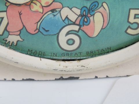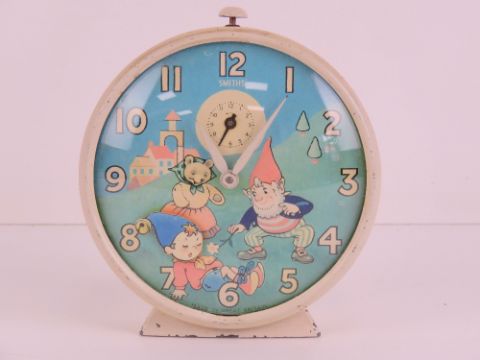 A Smiths Noddy alarm clock c1960s having 'nodding' Noddy to the 10cm dial.