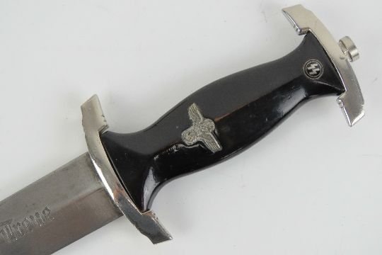 A WWII German SS Mans dagger made by Richard Herder Solingen, having 22cm blade, with scabbard.