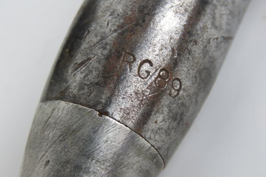 An inert 20mm Vulcan cannon round, together with an inert Czech made rubber grenade.
