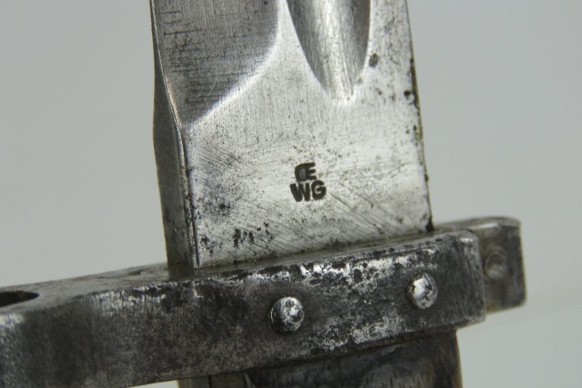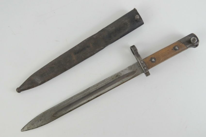 A WWII German MP34 bayonet having 24.5cm blade, with scabbard (scabbard a/f).