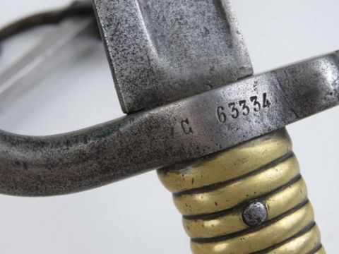 A Gras bayonet engraved to blade back with date 1877, hook quillion. Together with a Chassepot bayonet having hook quillion and brass grip. Two items.