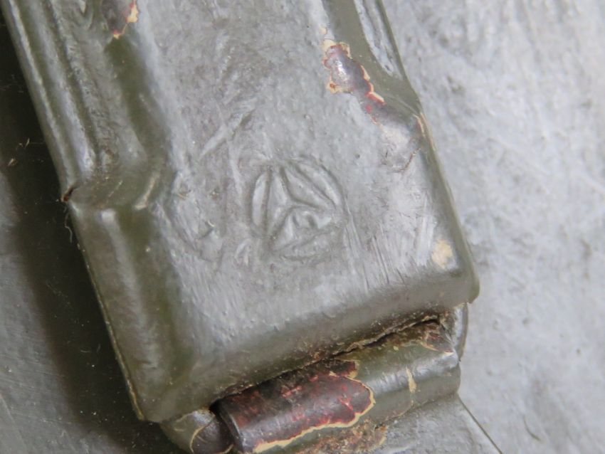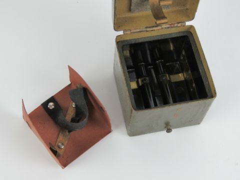 A WWII German MG34/42 Lafette battery box in green, having German marks upon, with strap.