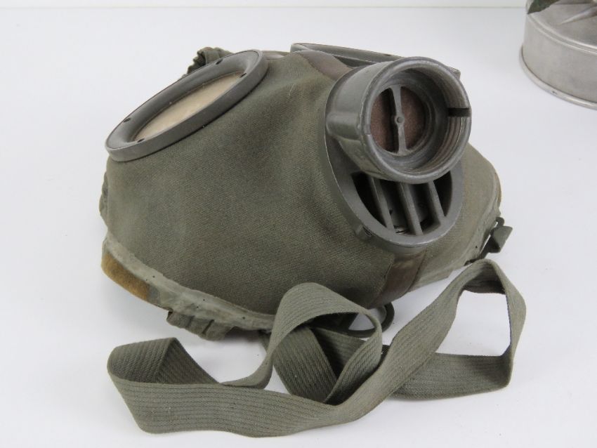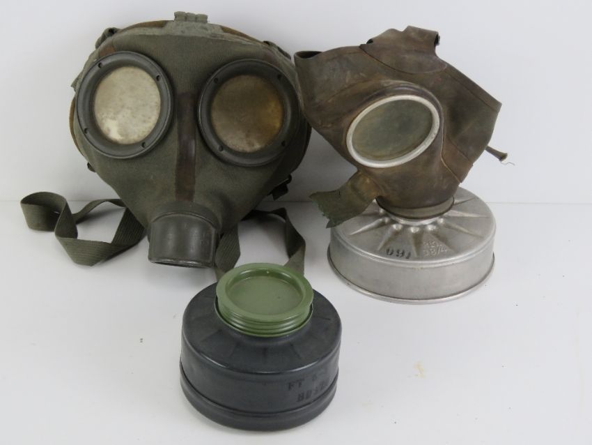 A WWII German Air Defence gas mask with filter, together with a civilian gas mask with filter. Two items.